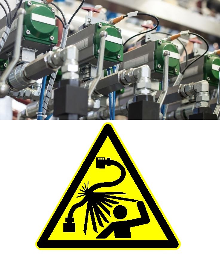 💥 Rupture brutale d’un flexible ou d’un composant → projections, coupures, brûlures, choc mécanique.